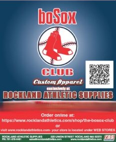 The BoSox Club has partnered with Rockland Athletics to offer clothing and other items with the BoSox Logo. Orders are taken on line at the BoSox Store. The store will be open the day of each luncheon and for 2 weeks after each luncheon. Check it out at: https://www.rocklandathletics.com/shop/the-bosox-club or by using the QR code in the ad that is posted on our BoSox Merchandise page, click here =>. BoSox Merchandise